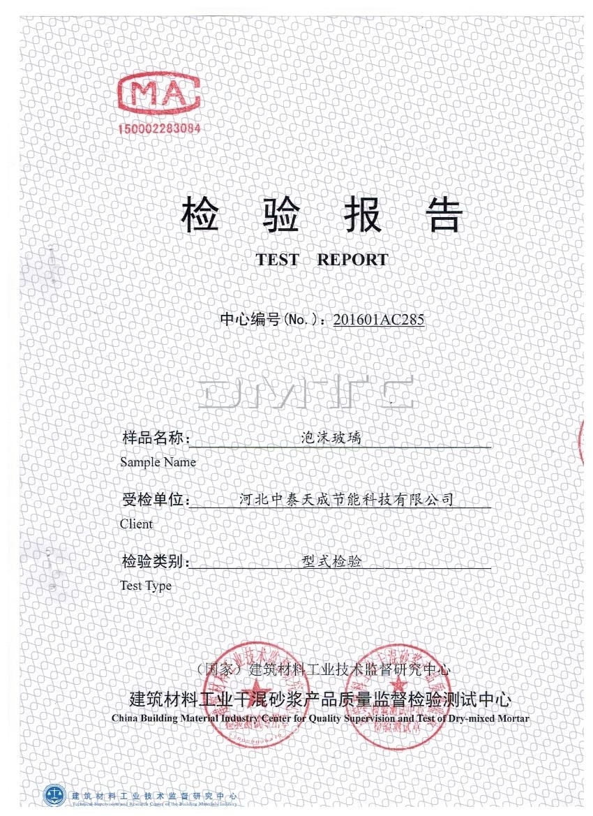 以上是它檢測的全項系數(shù),泡沫玻璃板廠家告訴您一般做單項檢測的就是導(dǎo)熱系數(shù),抗壓強(qiáng)度,這兩項,檢測依據(jù)泡沫玻璃板JC/T647-2014《泡沫玻璃絕熱制品》,防火等級區(qū)分依據(jù)的是GB8624-2012建筑材料及制品燃燒性能分級,如果您還有其它問題請聯(lián)系廠家河北中泰天成節(jié)能科技有限公司,咨詢電話:18003365866