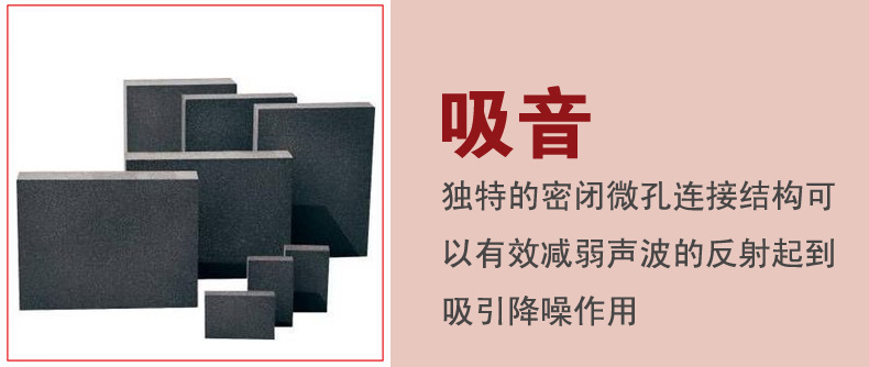 1.防火隔熱:泡沫玻璃保溫板是A1級不燃無機材料,耐火極限3小時以上,在高溫或火災情況下不會產生有毒氣體。因其閉孔率>95%,從而具有很好的隔熱性能。
